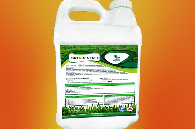 TURF 5-0-0+6Fe specialized liquid formulation designed to tackle moos infestation and steady lush green growth of lawns & turfs. Nitrogen in the product is stabilized with .Apart from Nitrogen (N) and Iron (Fe), it contain Kelp and Humic Acids. Agrisol,s TURF 5-0-0+6Fe is an excellent choice for use throughout the growing season to enhance greening, coverage and density in turfs. Organic Acids and Kelp in the product increase soil organic matter and microbial activity that enhances water holding capacity of the soil. Its unique formulation offers prolonged release of Nitrogen and minimizes nutrient losses.